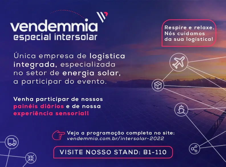 O evento acontece entre 23 e 25 de agosto e vamos ter um stand muito especial esse ano. A edição 2022 espera contar com mais de 30 mil visitantes, que terão acesso a toda cadeia produtiva dos setores fotovoltaico e termossolar, desde células e módulos FV a equilíbrio de sistemas, componentes e rastreamento até aplicações e distribuidoras.